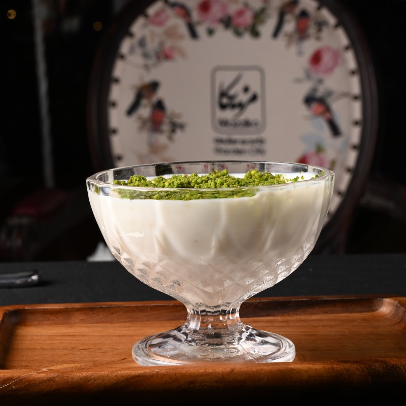 مهلبية ناعمة وباردة مصنوعة من الحليب والنشا، بنكهات شرقية خفيفة.